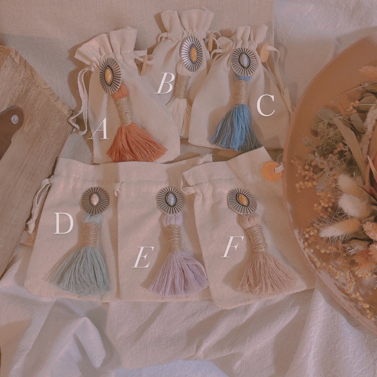 マクラメタッセル付き